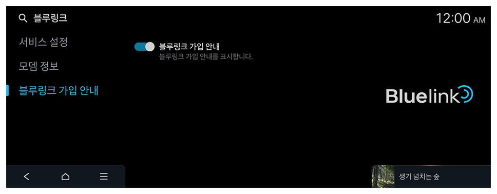 차량의 블루링크 설정 메뉴를 이용해 블루링크 서비스에 가입할 수 있습니다.