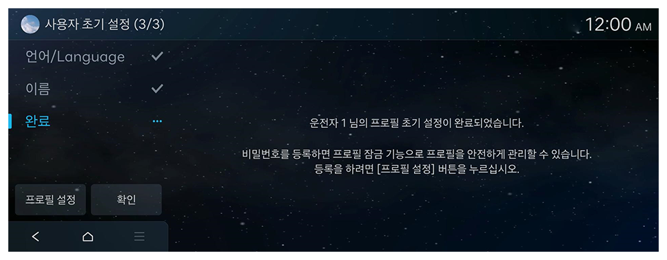 - 사용자 초기 설정 완료 화면이 나타나면 확인을 누르세요.