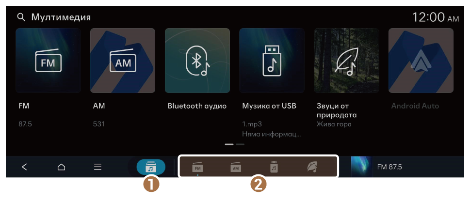 Началният екран за мултимедии може да се отвори по един от следните начини: