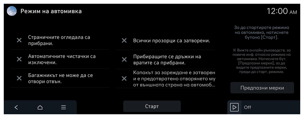 ], показваща необходимостта от ръчна намеса. Например, ако за шибидаха се покаже икона за ръчна намеса, преди започването на миенето на автомобила, проверете шибидаха и се уверете, че няма чужди предмети.