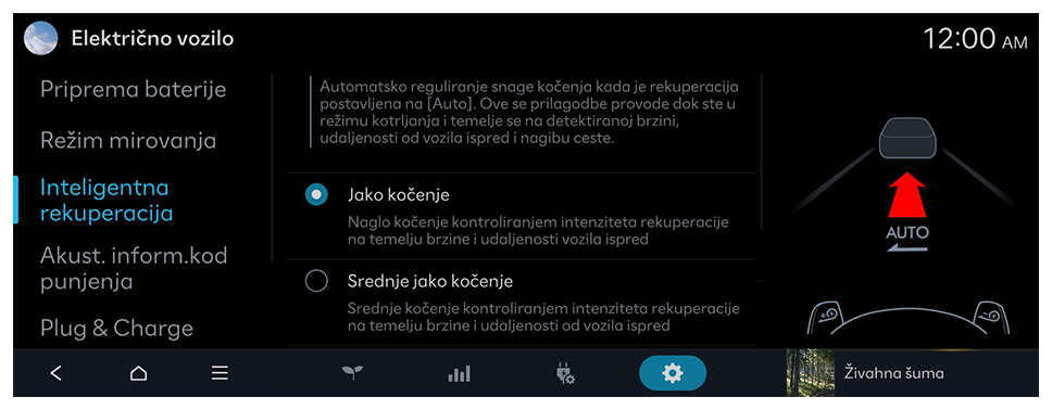 Automatsko reguliranje snage kočenja kada je rekuperacija postavljena na [Auto]. Ta se podešavanja vrše dok vozilo vozi bez hoda, a temelje se na otkrivenoj brzini vožnje, udaljenosti do vodećeg vozila i nagibu ceste.