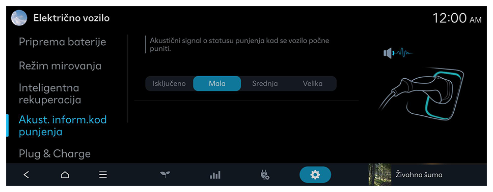 Akustični signal o statusu punjenja kad se vozilo počne puniti.