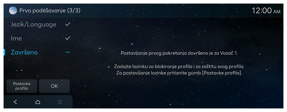- Kada se pojavi zaslon za postavljanje prvog pokretanja, pritisnite OK.
