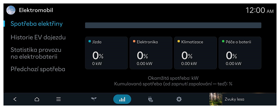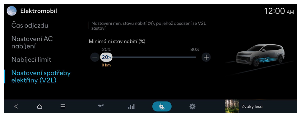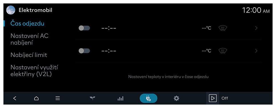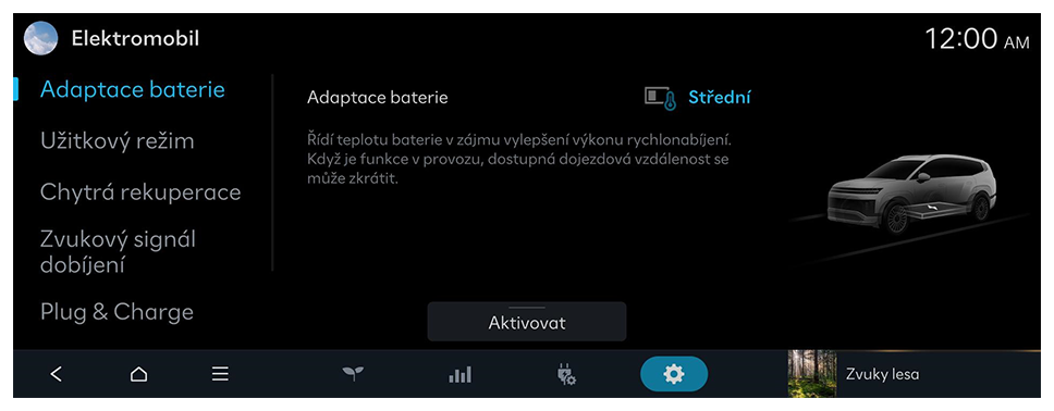 Možnost nastavení komfortních funkcí dostupných pro elektromobily.