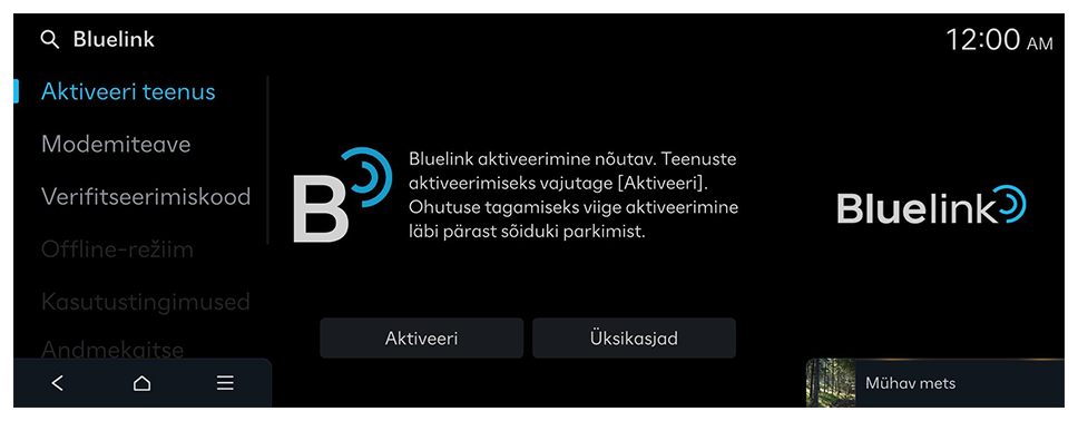 - Vajutage avakuval Seaded ► Bluelink ► Aktiveeri teenus.