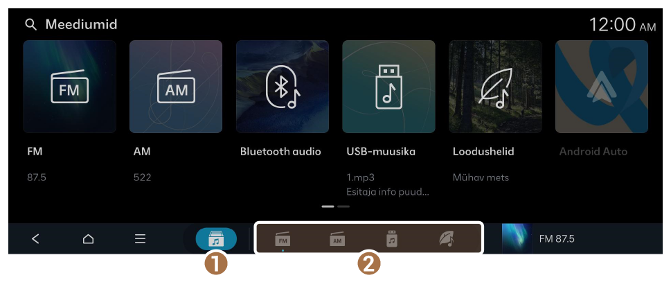 Saate esitada muusikat või jaamu eri meediumide abil, näiteks raadio või helifailide mängija kaudu.