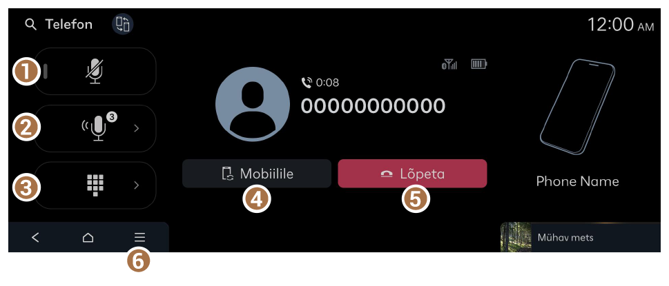 - Kui mobiiltelefon on süsteemiga ühendatud, võidakse sõiduki kõlarit kasutada kõnehelina esitamiseks ka siis, kui olete sõidukist väljunud. Kõne katkestamiseks keelake süsteemis Bluetoothi ühendus või lülitage mobiiltelefonis Bluetoothi funktsioon välja.