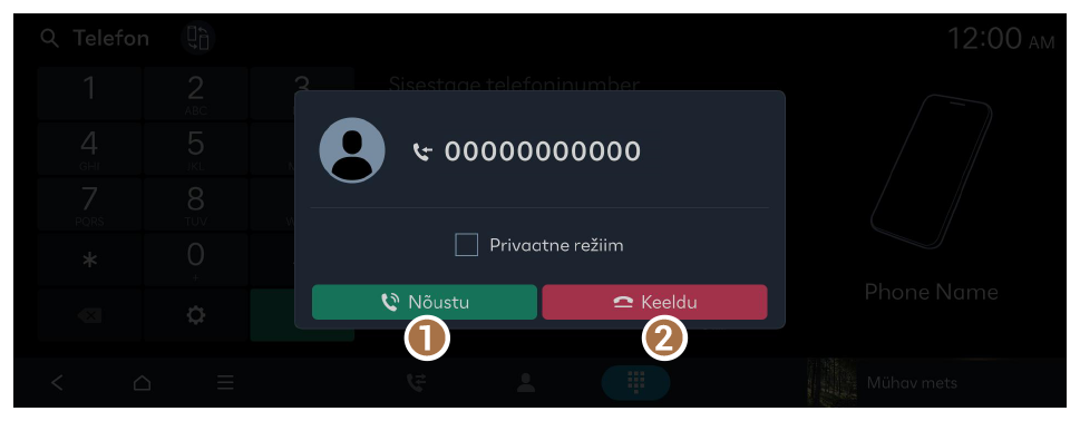 Kui Bluetoothi kaudu on ühendatud mobiiltelefon, kuvatakse sissetuleva kõne korral ekraanil saatja nimi või telefoninumber.