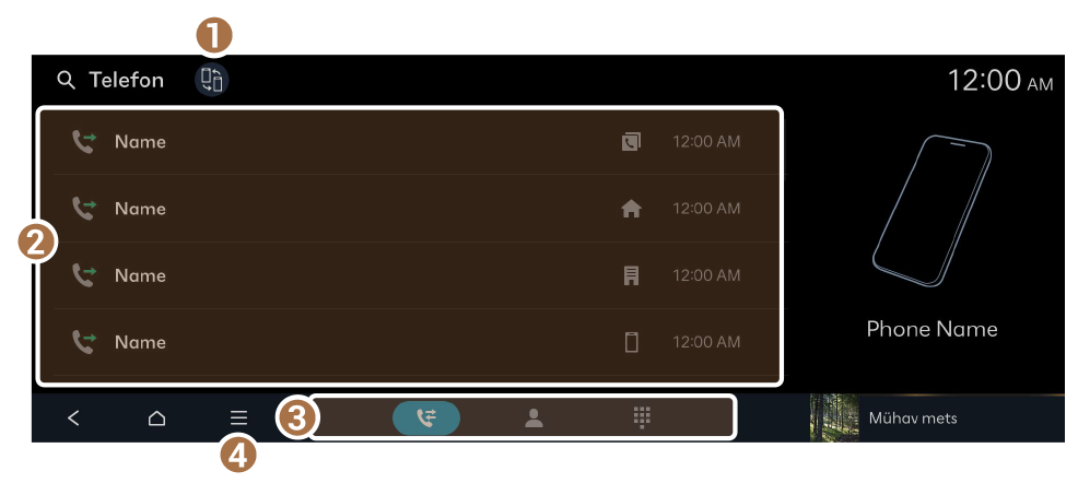 - Kasutage hiljutiste kõnede loendi kerimiseks roolil olevat liigutamisnuppu. Soovitud kontakti valimiseks vajutage seda.