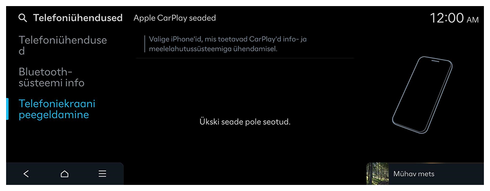 - Tehke avakuval valikud Seaded ► Telefoniühendused ► Telefoniekraani peegeldamine ► Apple CarPlay seaded.