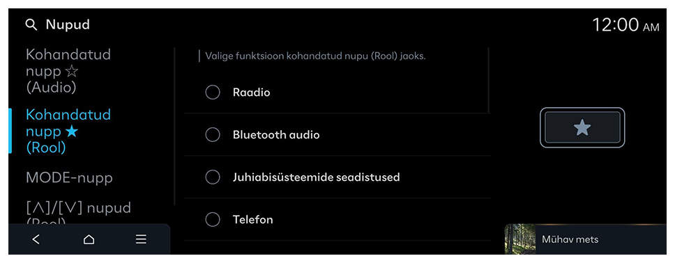 Valige funktsioon kohandatud nupu (Audio) jaoks.