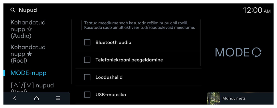 - Saadaolevad sätted võivad erineda olenevalt konkreetse sõiduki mudelist ja tehnilistest andmetest.