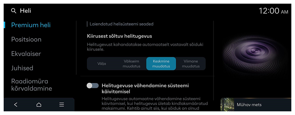 Kõigi muude helitugevuste vähendamine, kui esitatakse sõiduohutusega seotud hoiatusheli.