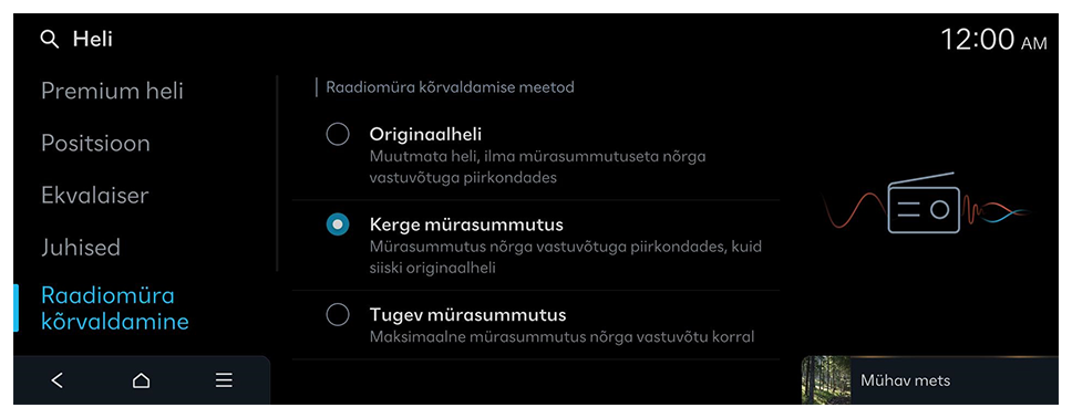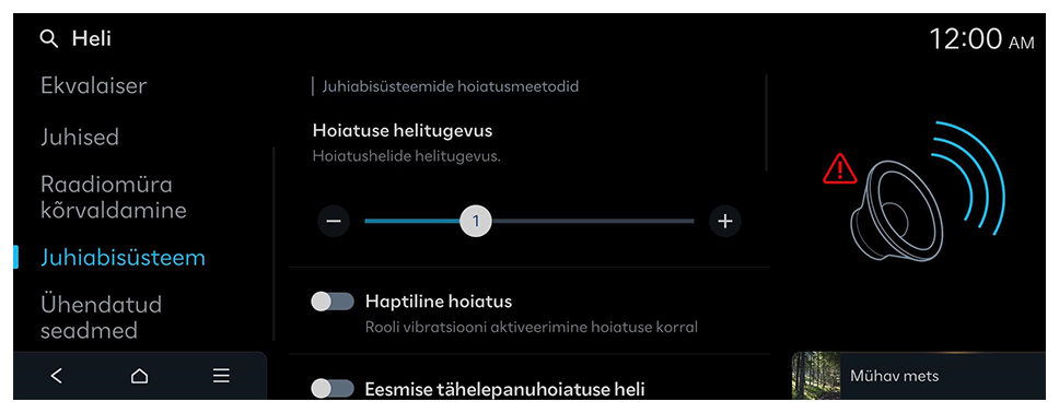 Sõidurea ohutuse kuuldava hoiatuse väljalülitamine ka siis, kui nii hoiatuse helitugevus kui ka taktiilne hoiatus on sees.