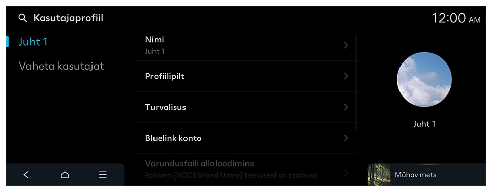 - Tehke avakuval valikud Seaded ► Kasutajaprofiil.