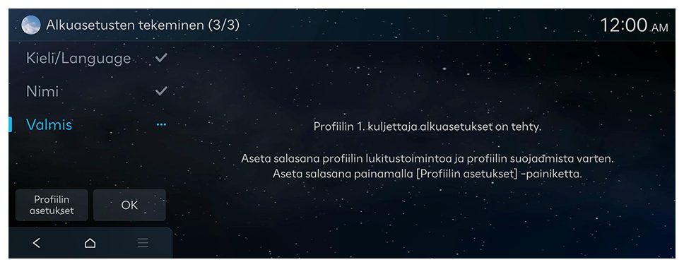 - Kun alkuasetusten näyttö tulee näkyviin, paina OK.