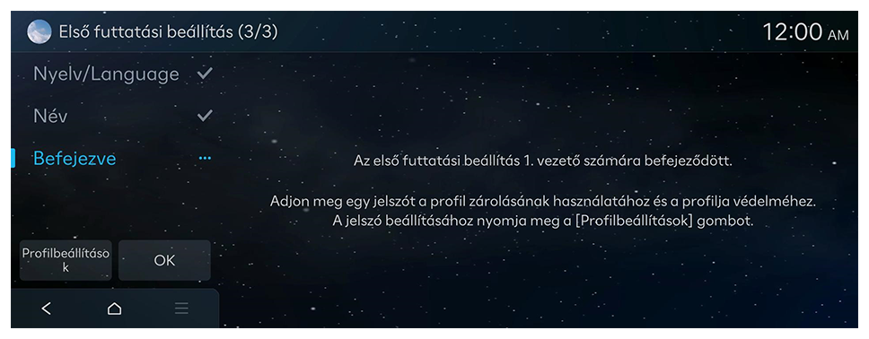 A Személyre szabási szolgáltatás eléréséhez felhasználói profilt kell létrehozni. Ha még nem hozott létre felhasználói profilt, kövesse a lenti útmutatót a felhasználói fiók létrehozásához, majd szinkronizálja azt Bluelink-fiókjával és a járműfelhasználói fiókjával, mielőtt használatba venné a Személyre szabási szolgáltatást.