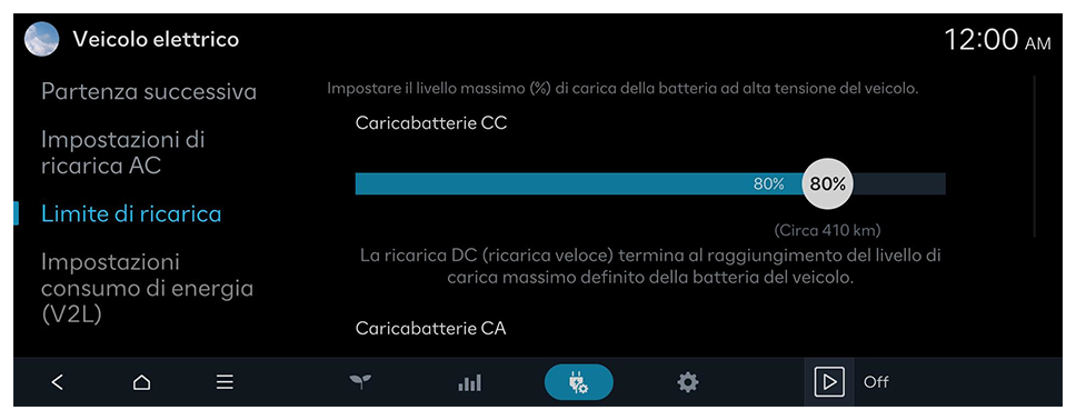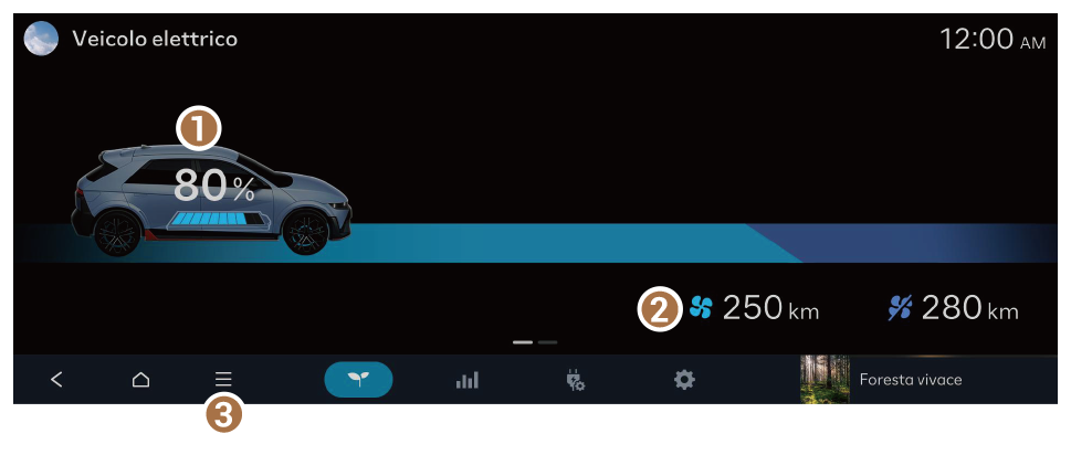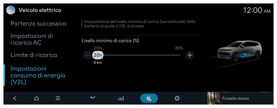 La modalità Utility utilizza la batteria ad alta tensione per alimentare i dispositivi elettronici, come il sistema infotainment, la climatizzazione o le luci dell'abitacolo, in caso di sosta prolungata o di campeggio. La modalità Utility può essere attivata quando EV è pronto o in posizione di parcheggio (P). In modalità utilità non è possibile guidare.