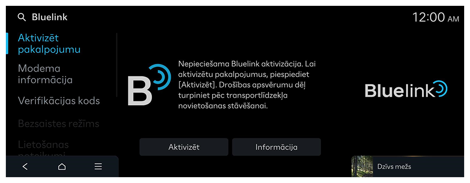 - Sākuma ekrānā pieskarieties pie Iestatījumi ► Bluelink ► Aktivizēt pakalpojumu.