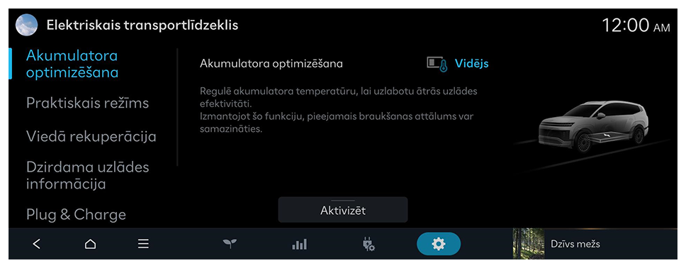 Elektrotransportlīdzekļa iestatījumu konfigurēšana
