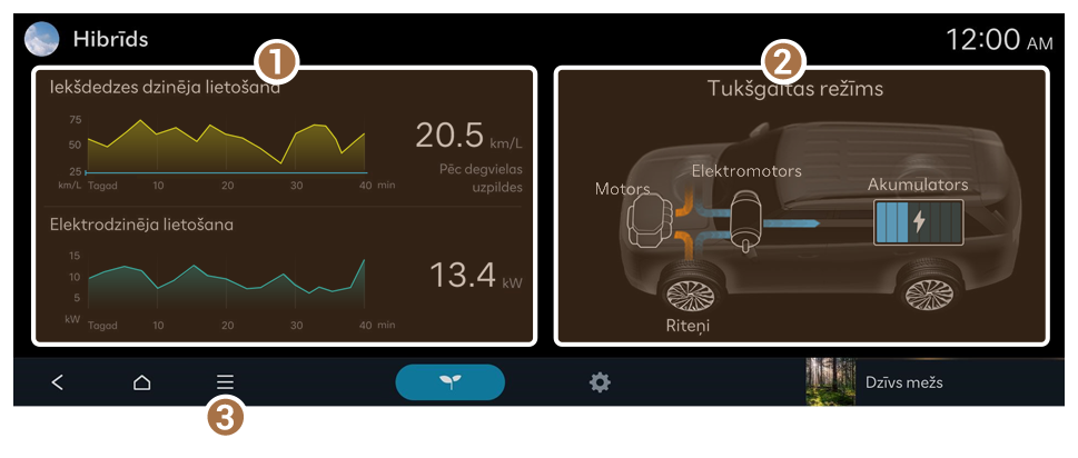 ![]() | Uzlāde tiek veikta gan ar bremzēšanas palēninājuma enerģiju, gan dzinēja jaudu |