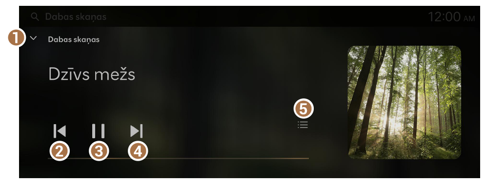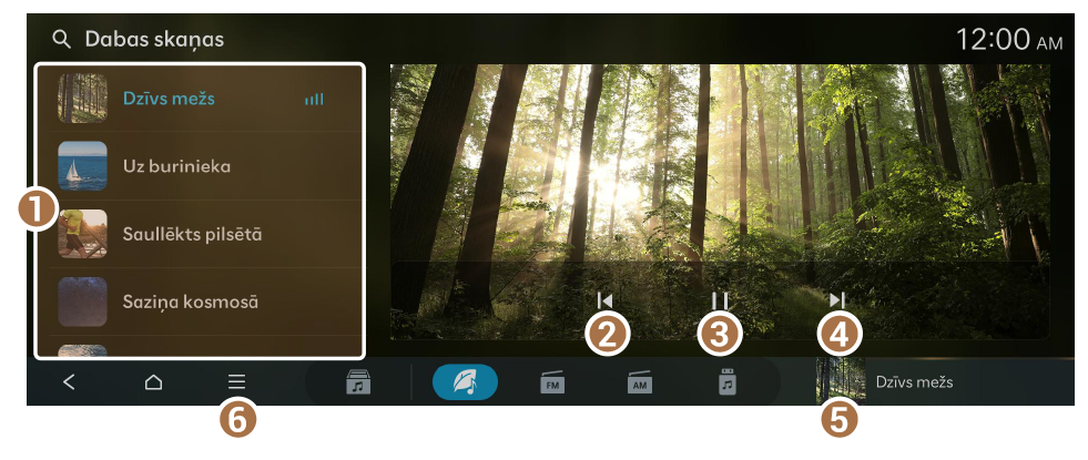 - Parāda dabas skaņu atskaņotāja ekrānu.