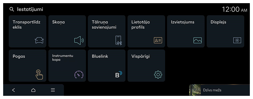 Pieejamie iestatījumi var atšķirties atkarībā no transportlīdzekļa modeļa un specifikācijām.
