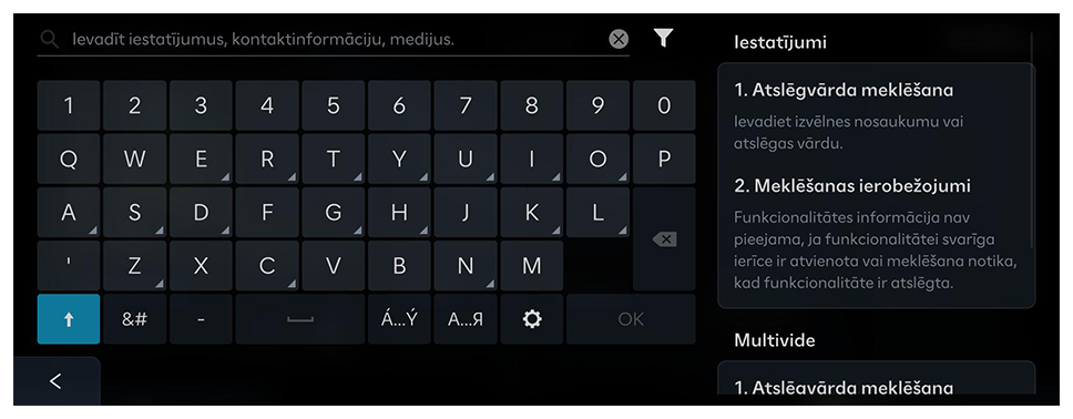 , ja ekrānā tiek parādīta ikona. - Meklēšanas rezultāti tiek rādīti secīgi, pamatojoties uz sniegtās izvēlnes struktūru un informāciju dažādos režīmos.