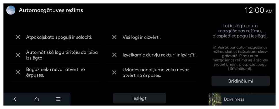 ]. Piemēram, ja tiek rādīta ikona manuāla manevra veikšanai attiecībā uz jumta logu, pārbaudiet jumta logu un pārliecinieties, vai tajā nav svešķermeņu, pirms sākat mazgāšanu.