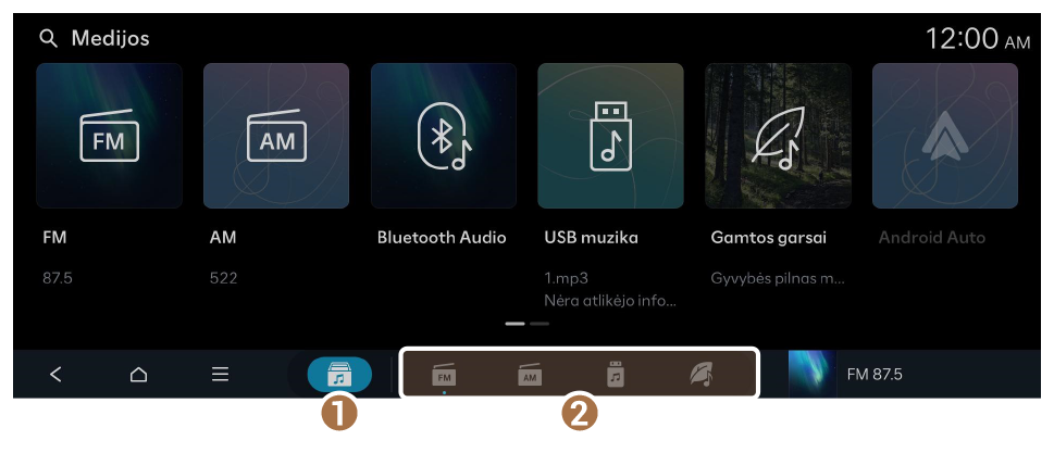 - Pradžios ekrane arba medijos ekrane paspauskite