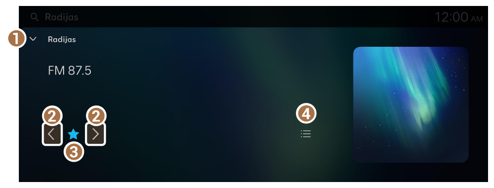 - Nustatykite [∧]/[∨] mygtukus ant vairo arba SEEK/TRACK mygtukus, kad jie atliktų tam tikrą funkciją klausantis radijo. ► Žr. „[∧]/[∨] mygtukai (Vairas)“.