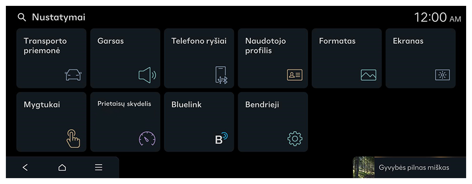 arba valdymo skydelyje paspauskite mygtuką [SEARCH], įveskite paieškos terminą ir pasirinkite elementą, kad būtų pradėtas vykdymas. - Pasiekiami nustatymai gali skirtis atsižvelgiant į transporto priemonės modelį ir specifikacijas.