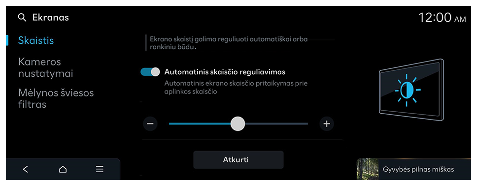 Ekrano skaistį galima reguliuoti automatiškai arba rankiniu būdu.