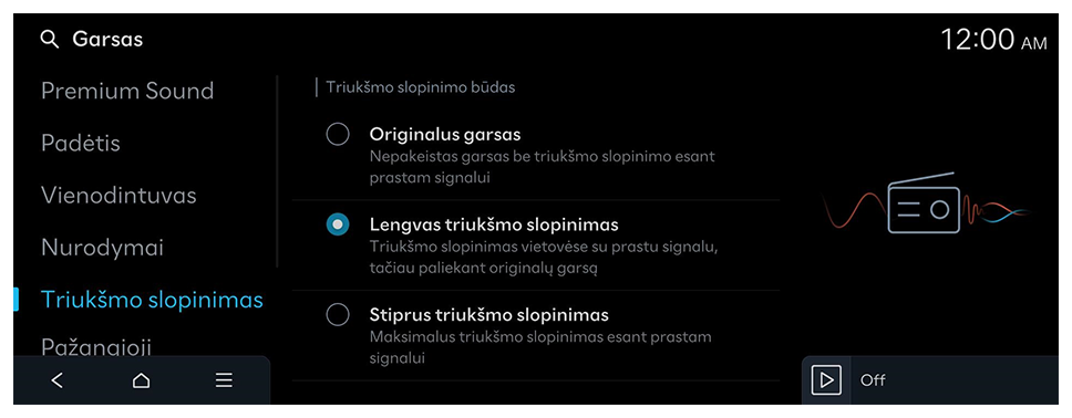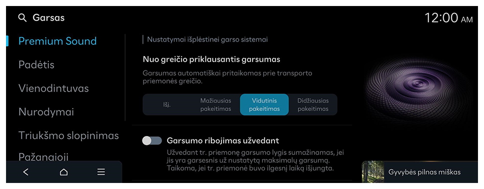 Visų kitų garso signalų garsumas sumažinamas, kai pateikiamas vairavimo saugos įspėjamasis garsas.