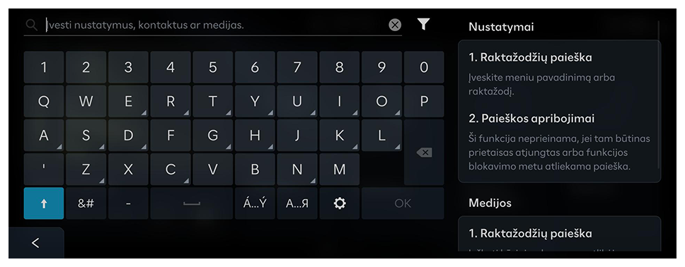 , jei ekrane rodoma piktograma. - Paieškos rezultatai pateikiami nuosekliai, atsižvelgiant į meniu struktūrą ir informaciją įvairiais režimais.