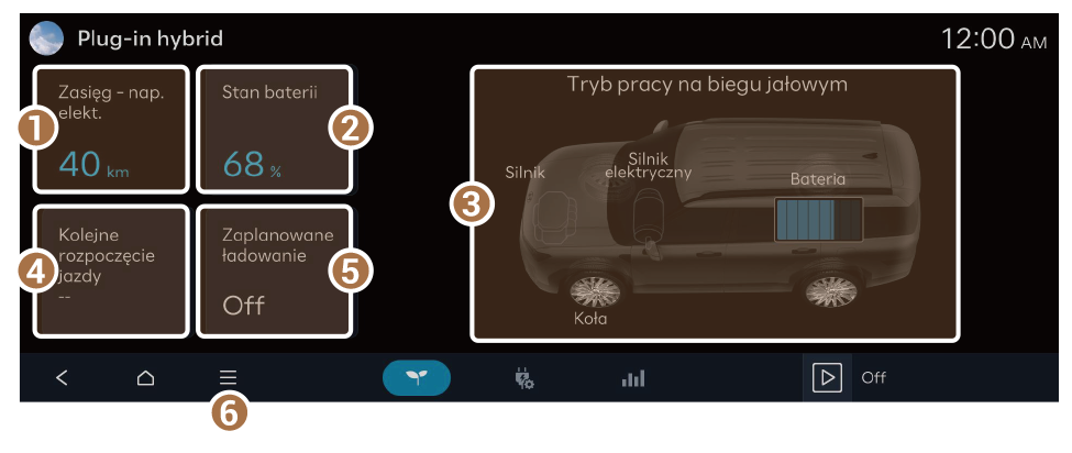 ![]() | Ładowanie z wykorzystaniem mocy silnika spalinowego w trybie czuwania |