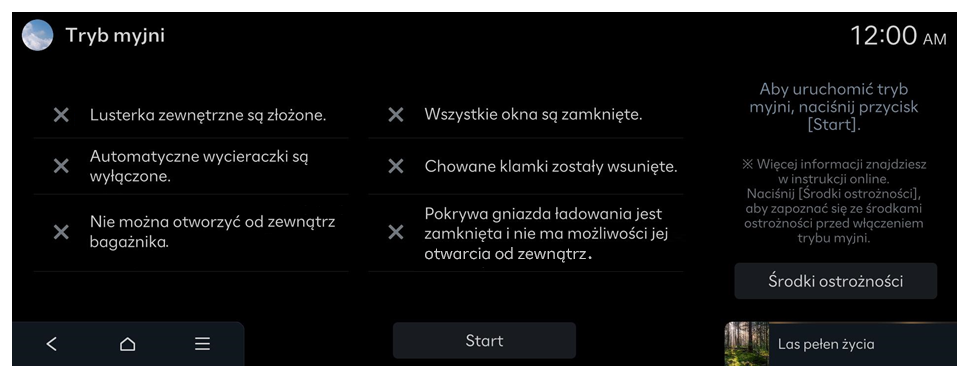 ]. Na przykład, jeśli wyświetlana jest ikona ręcznej obsługi dotycząca szyberdachu, przed rozpoczęciem mycia sprawdź szyberdach i upewnij się, że nie znajdują się na nim żadne przedmioty.