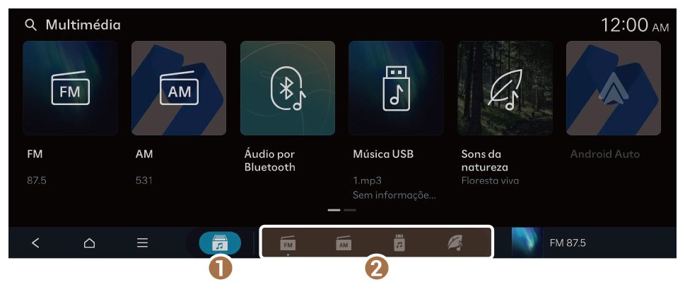 - Apresenta o ecrã inicial de multimédia.