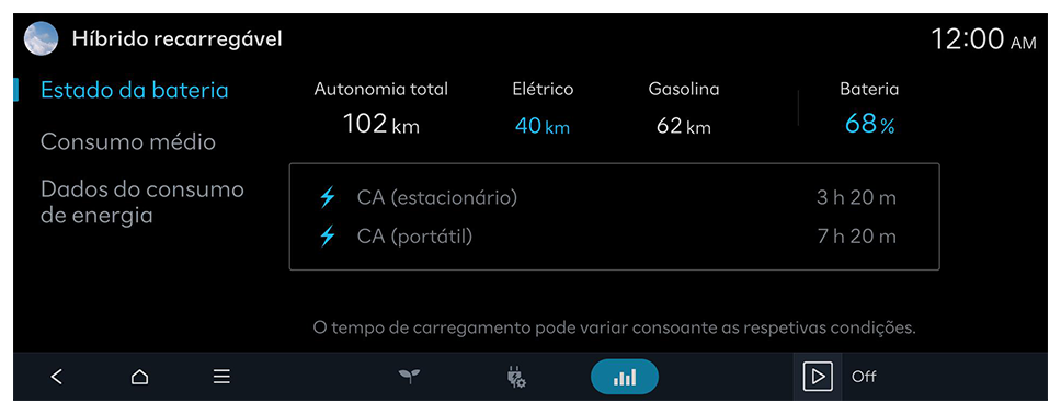 ![]() | Carregar a bateria com a potência do motor de combustão em modo de espera |