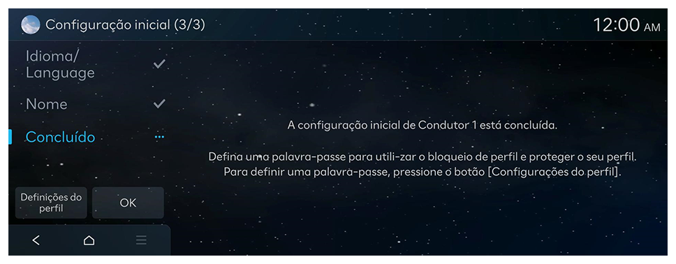 Para aceder ao serviço de personalização, deve ser criado um perfil de utilizador. Se ainda não tiver sido criado um perfil de utilizador, siga as instruções abaixo para criar um perfil de utilizador e sincronize-o com a sua conta Bluelink e de utilizador do veículo antes de usar o serviço de personalização.