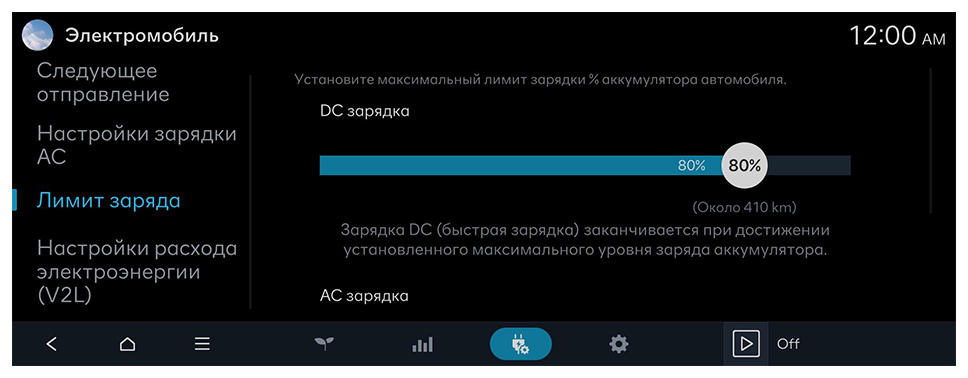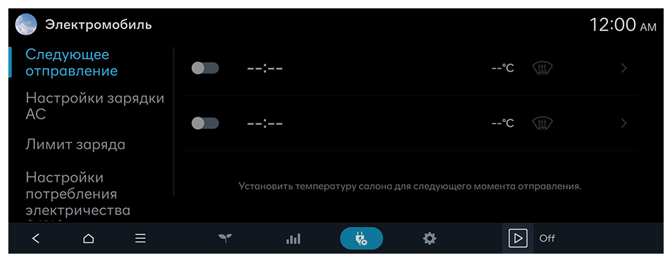 Изменение настроек электромобиля