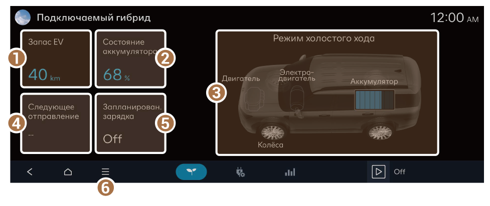 ![]() | Зарядка за счет мощности двигателя в режиме ожидания |