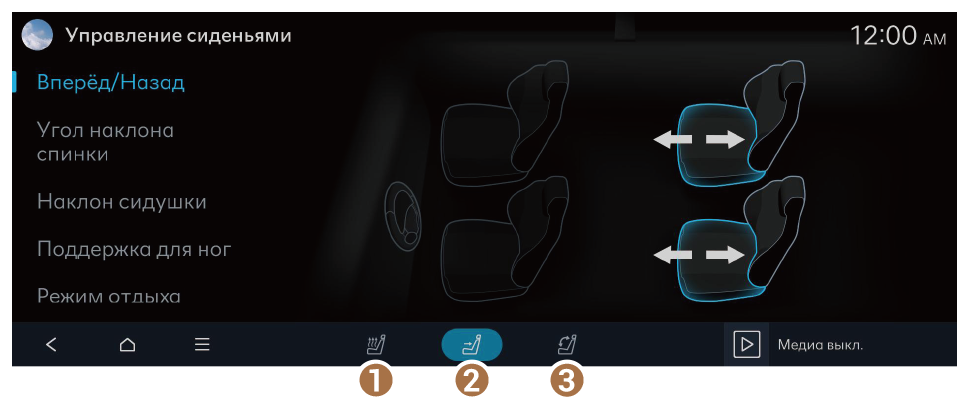 Нажмите Сиденья на главном экране медиасистемы.