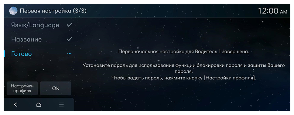 - При появлении экрана первоначальной настройки нажмите OK.