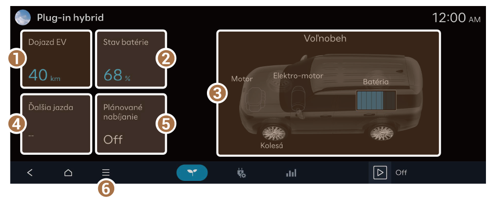 ![]() | Brzdenie vozidla znížením výkonu motora a nabíjanie energiou pri spomaľovaní |