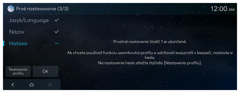 Na prístup k personalizovanej službe je potrebné vytvoriť profil používateľa. Ak ešte nemáte vytvorený profil používateľa, postupujte podľa nasledujúcich pokynov, aby ste si vytvorili profil používateľa a synchronizovali ho s účtom Bluelink a účtom používateľa vozidla pred použitím personalizovanej služby.