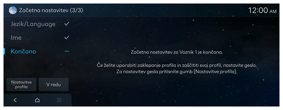 Za dostop do storitev personalizacije je potrebno ustvariti uporabniški profil. Če uporabniški profil še ni bil ustvarjen, sledite spodnjim navodilom, da ustvarite uporabniški profil in ga uskladite s svojim računom Bluelink in računom uporabnika vozila, preden uporabite storitev personalizacije.