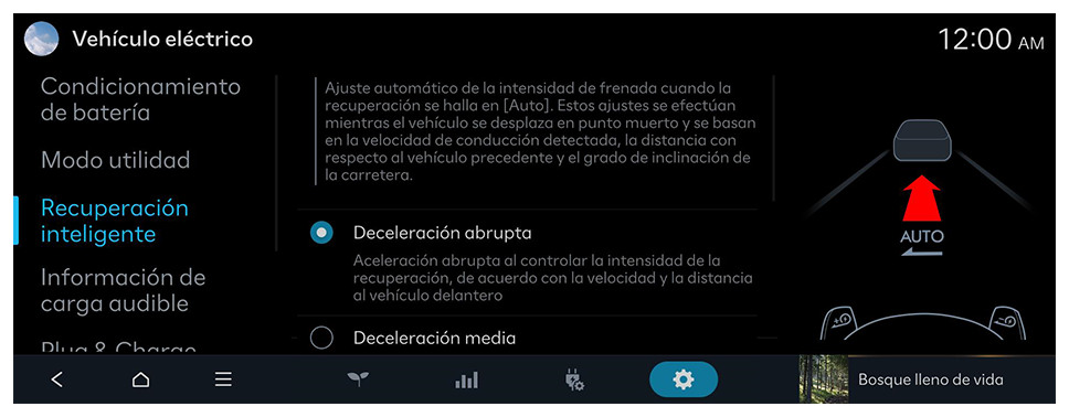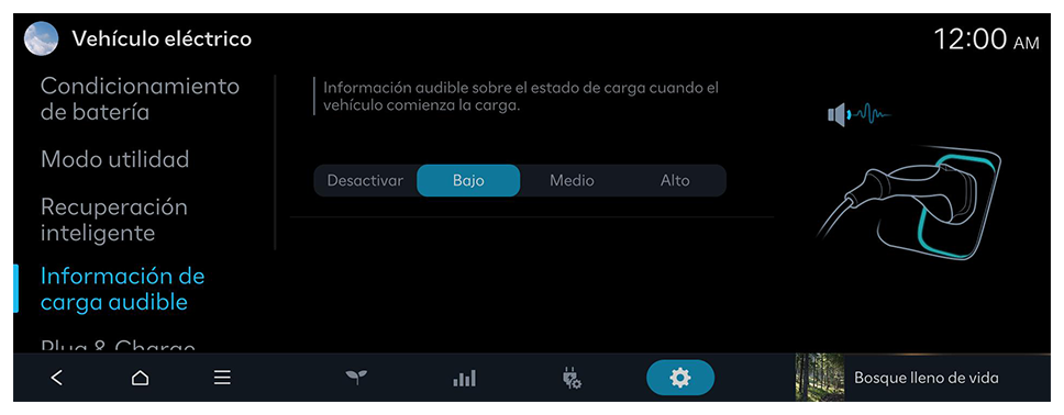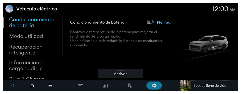 Aparece la pantalla de ajustes del vehículo eléctrico.