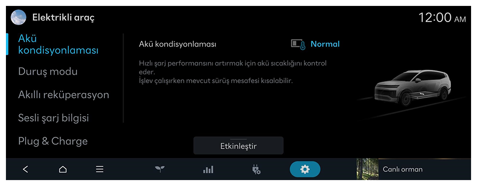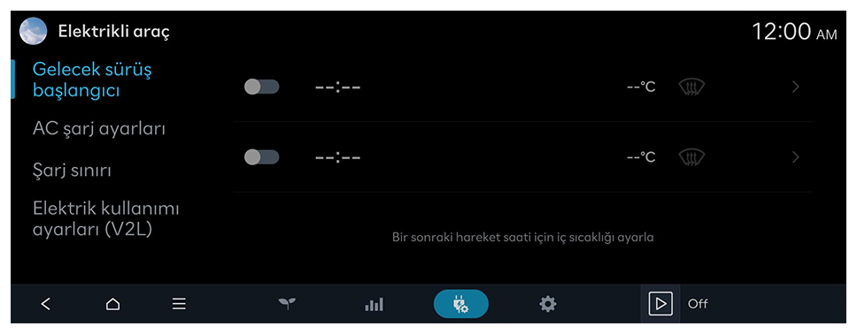 Elektrikli araçlar için kullanılabilir konfor özelliklerini ayarlayabilirsiniz.