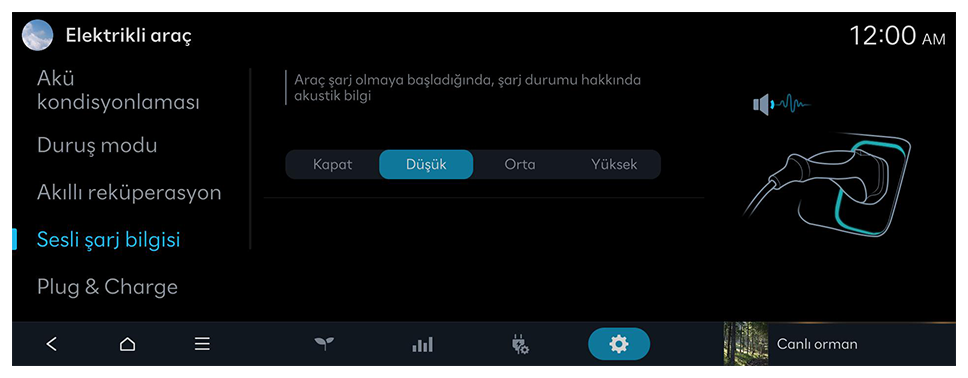 Araç şarj olmaya başladığında, şarj durumu hakkında akustik bilgi.